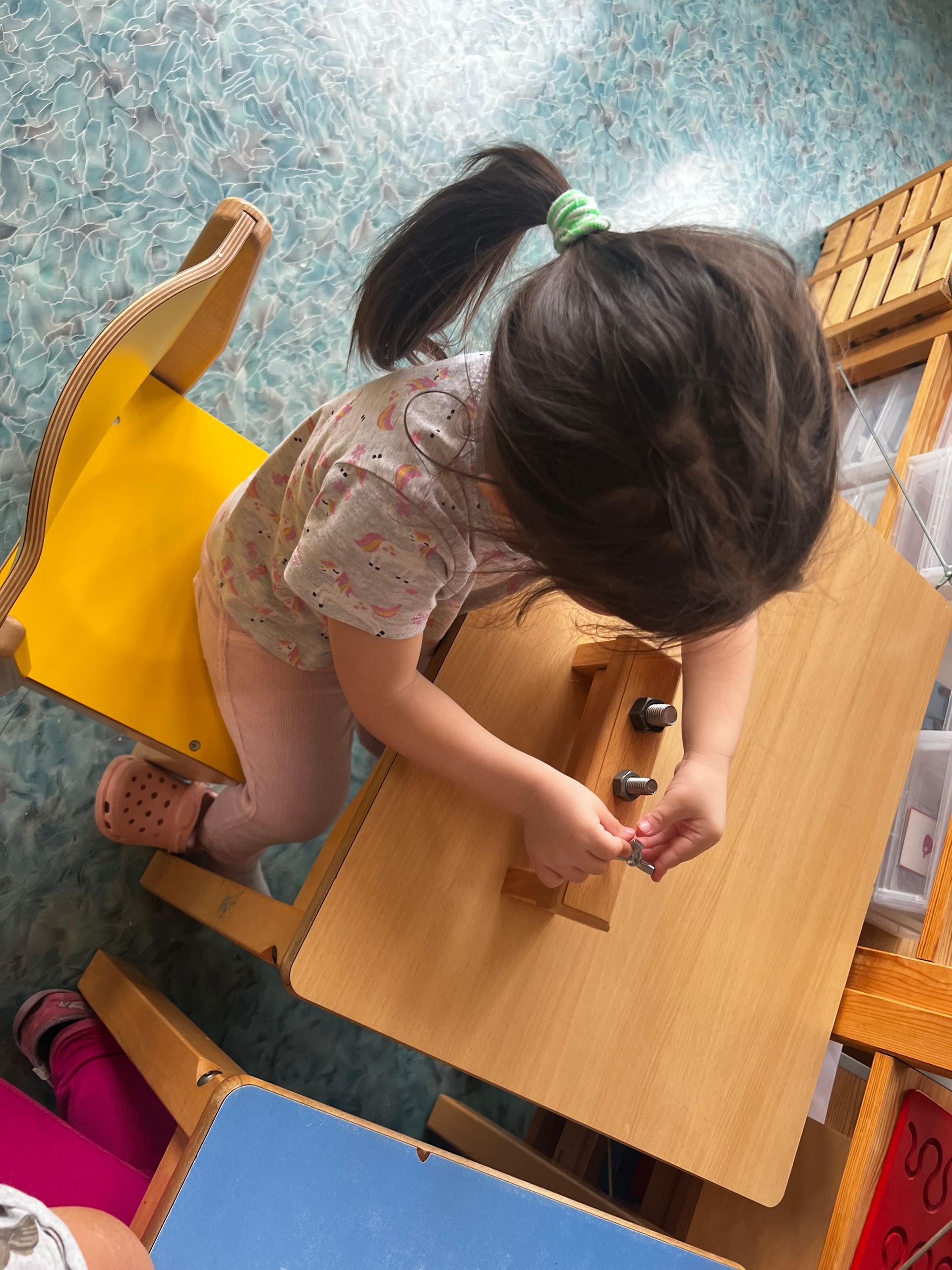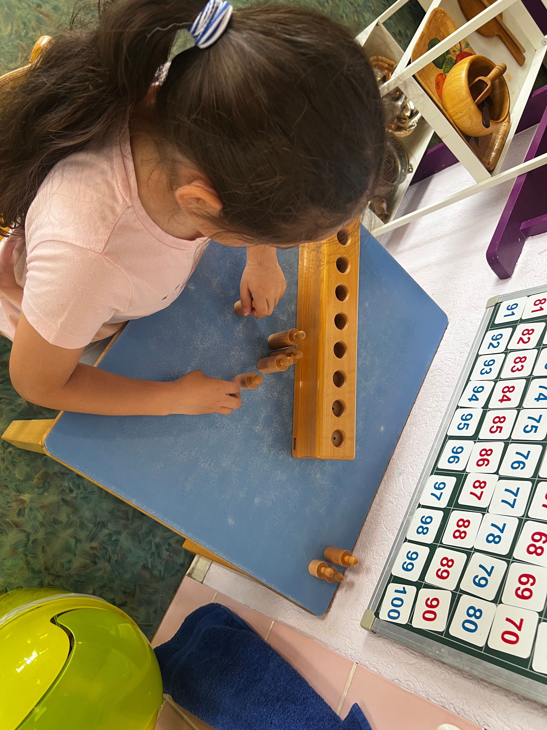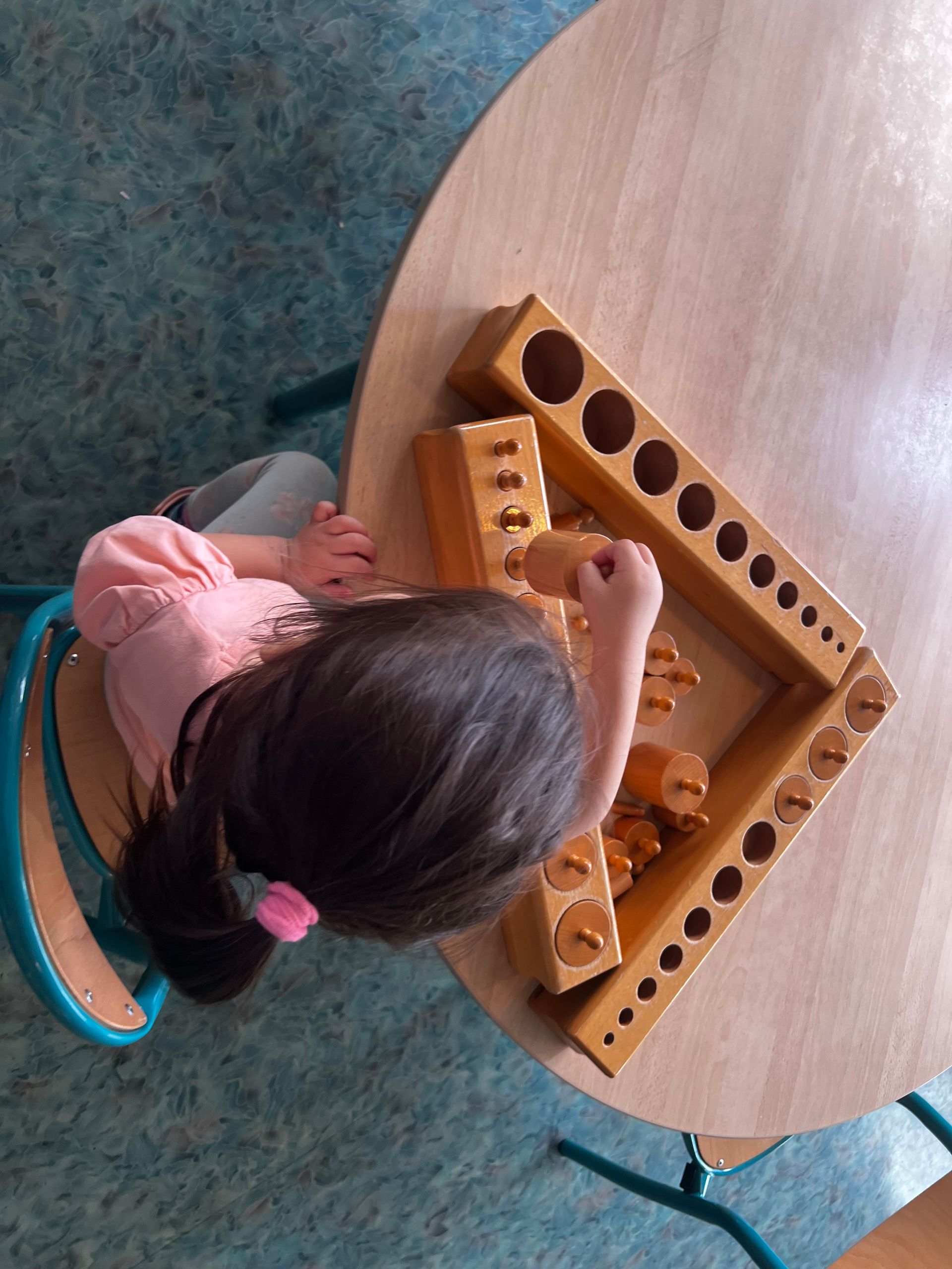 Les enfants de 0 à 6 ans possèdent ce que Maria Montessori appelle un esprit absorbant. Ce type d’esprit a la capacité unique et provisoire d’absorber tous les aspects physiques, mentaux et spirituels de son environnement, sans effort, ni fatigue. Pour aider l’enfant dans sa construction de soi, le travail individuel est encouragé.